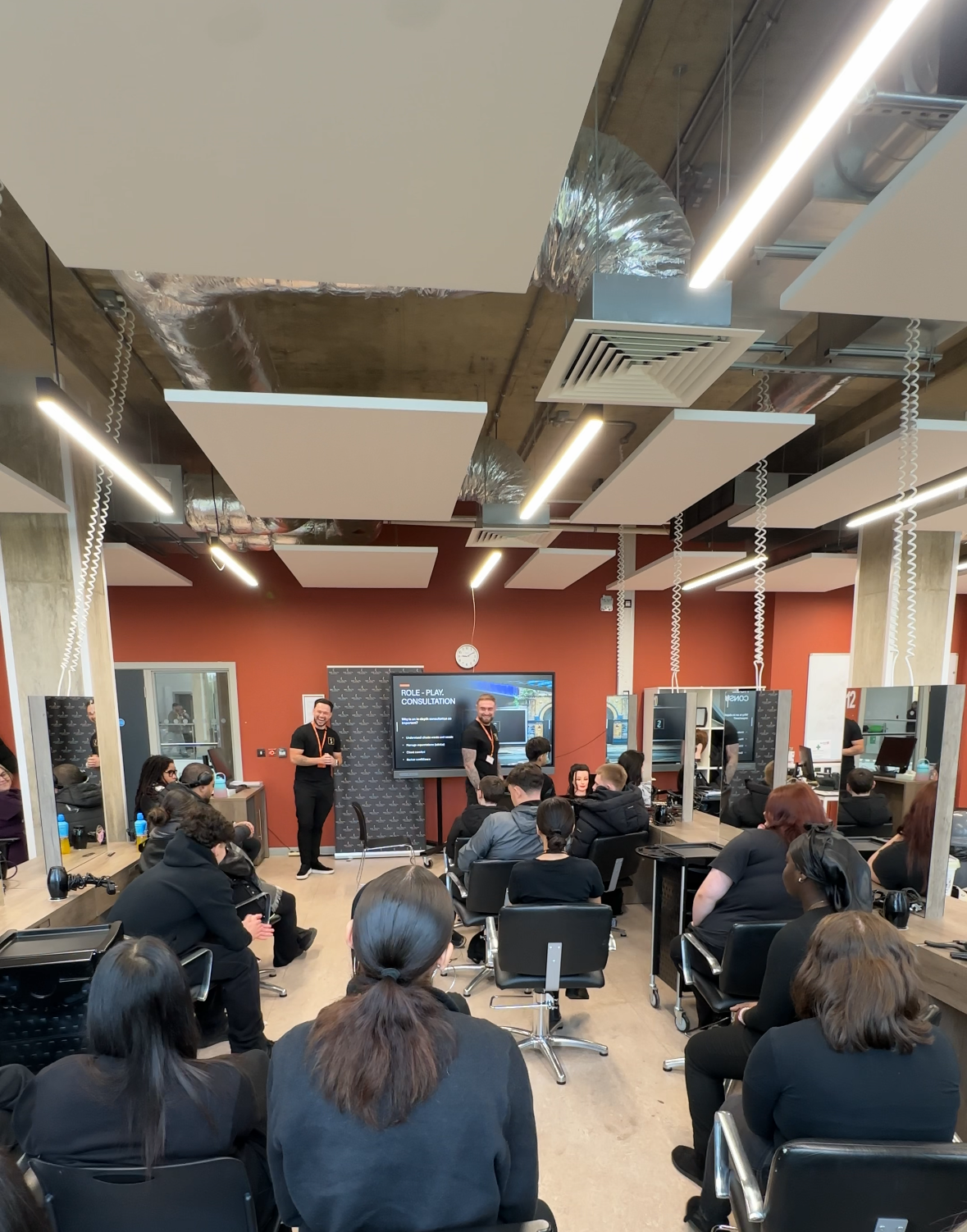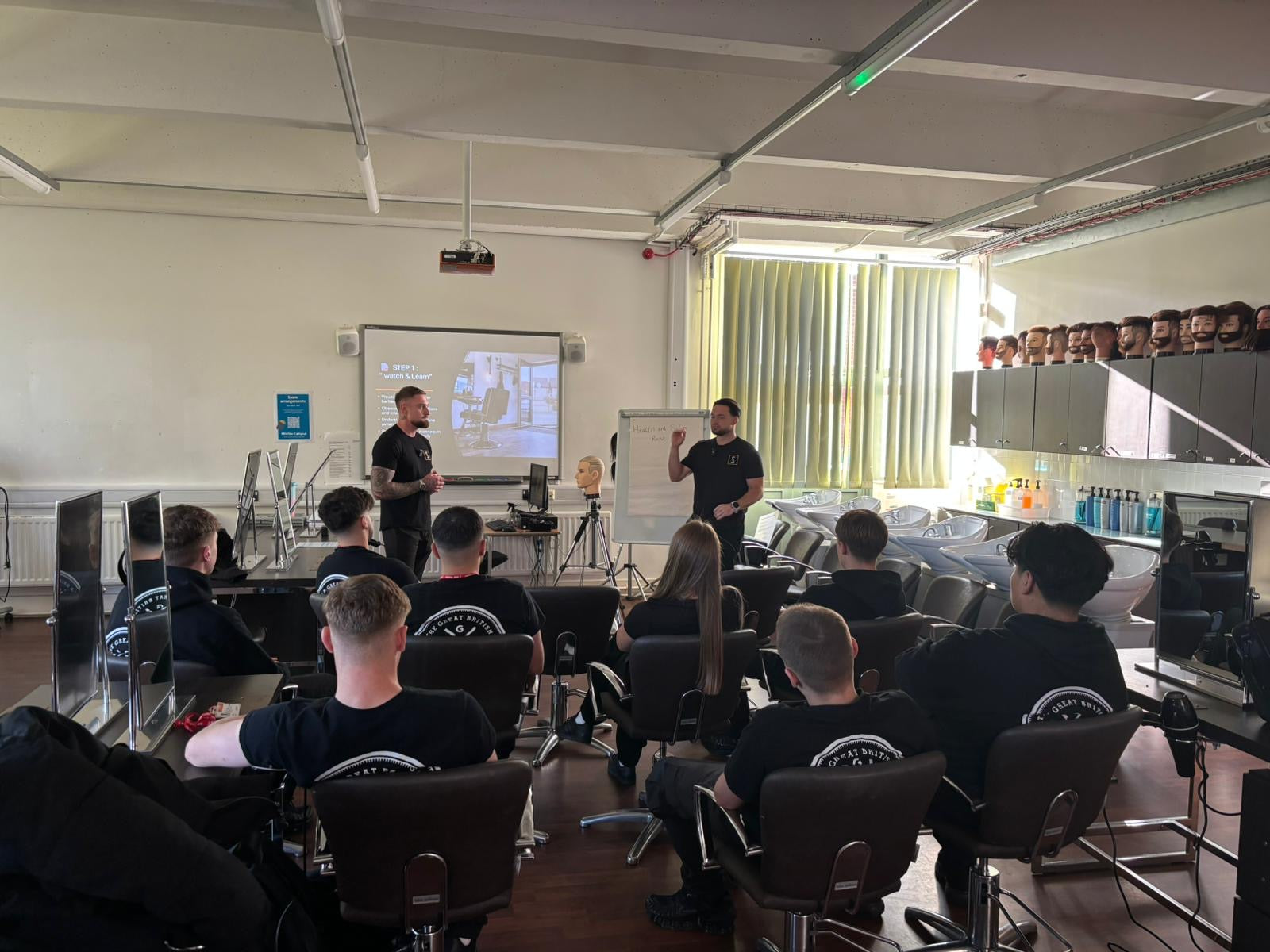 Our Society Barbering 1-Day workshop. Perfect for groups of stylists in salons, barbershops and colleges, this workshop combines practical skills, industry insights, and live demonstrations to take your barbering expertise to the next level.